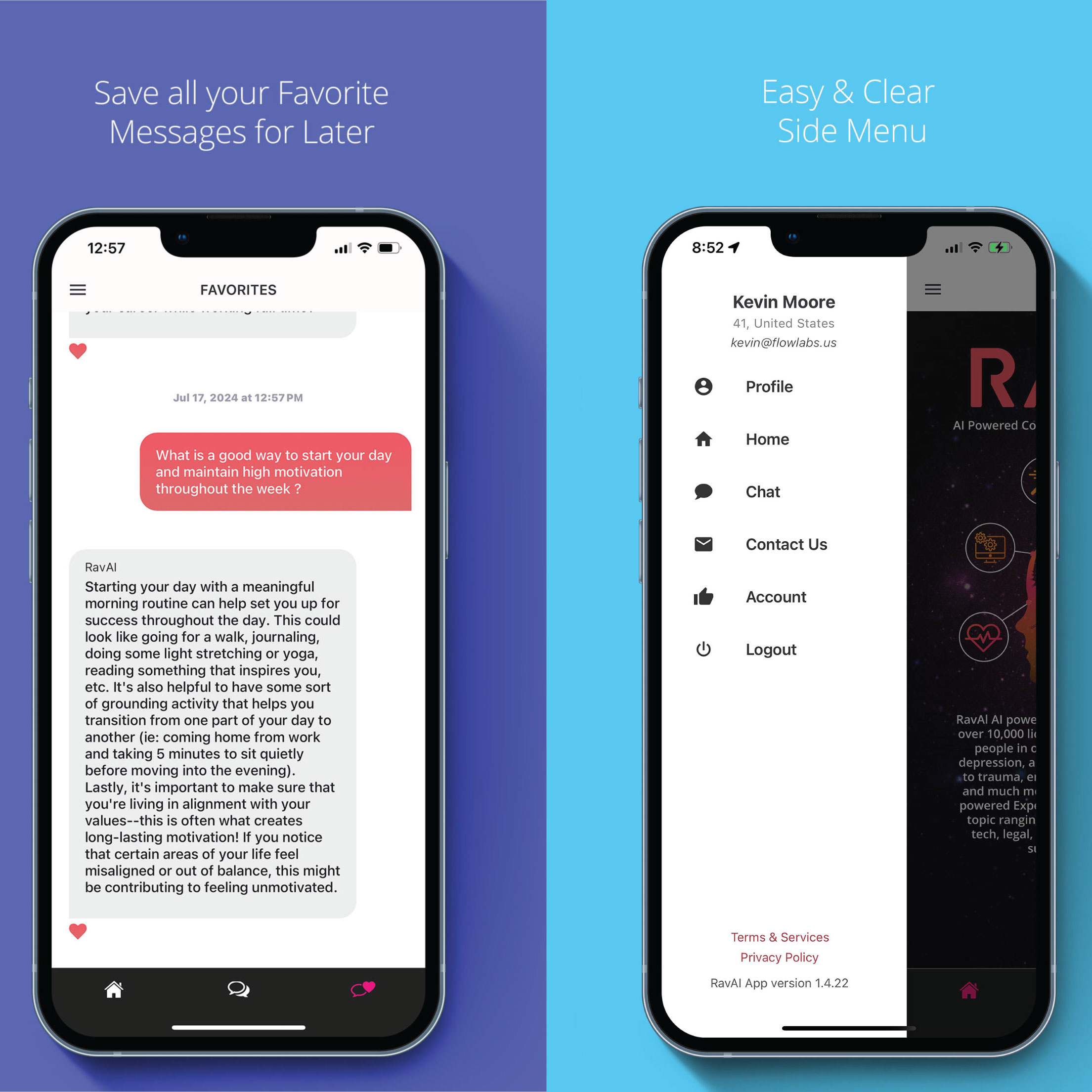 RavAI is meant to searve as an enterpise level app that a company can use to assist with the mental health of their employees as well as being a handbook for anything related to the business. Paired with a admin web app to manage users, RavAI have been successfully deployed to several business who just about depend on it's help.