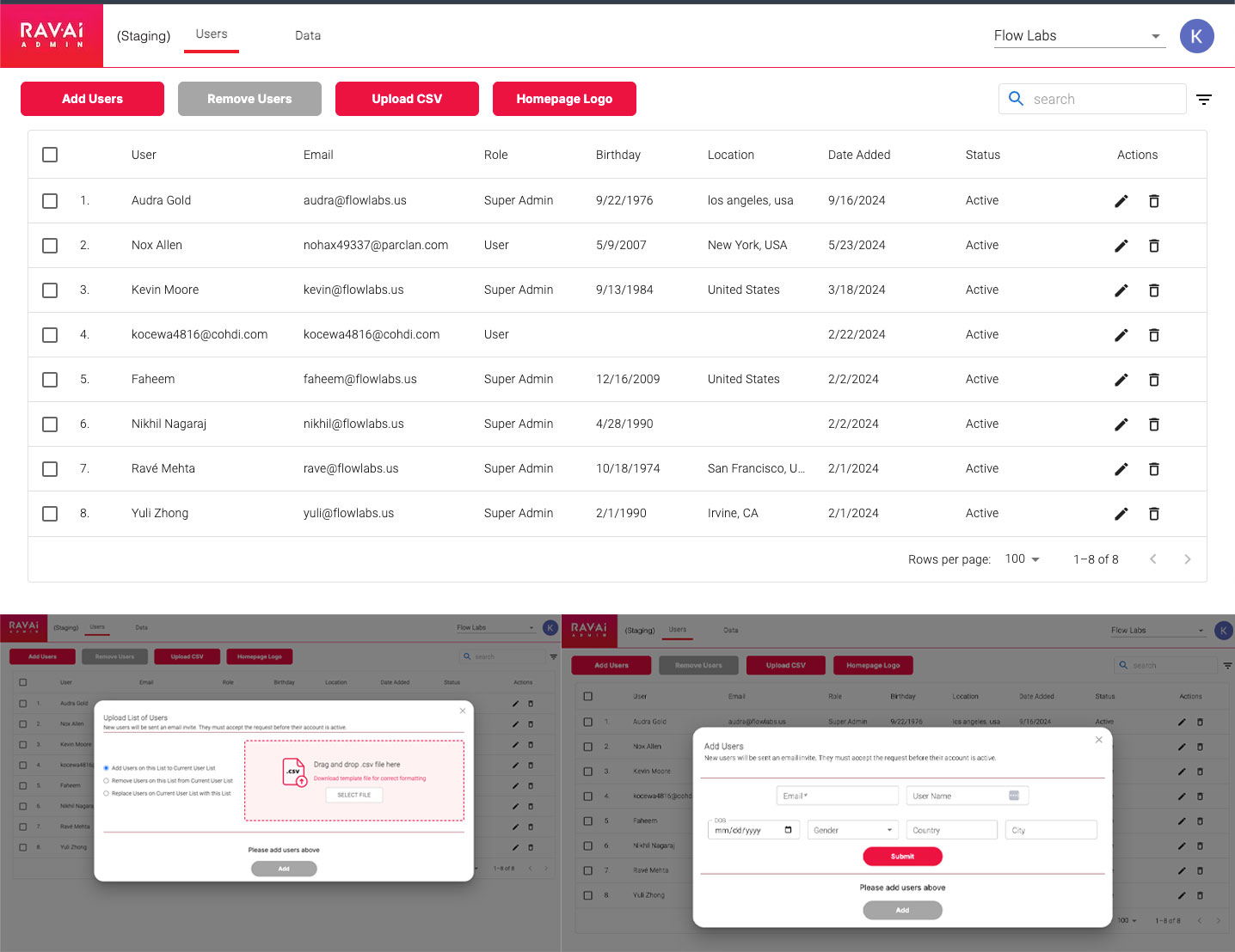 The app is accompanied with an admin web portal that allows business owners and managers access over user permissions and account status. It also takes different data type inputs such as pdf, videos, word docs, websites etc... to learn about a business and give the AI model whatever it needs to answer employee question. I designed this to be as clean and strait forward as possible. We've gotten no messages about usability or not being able to find something, so I'm happy to report , that approach has been affective.